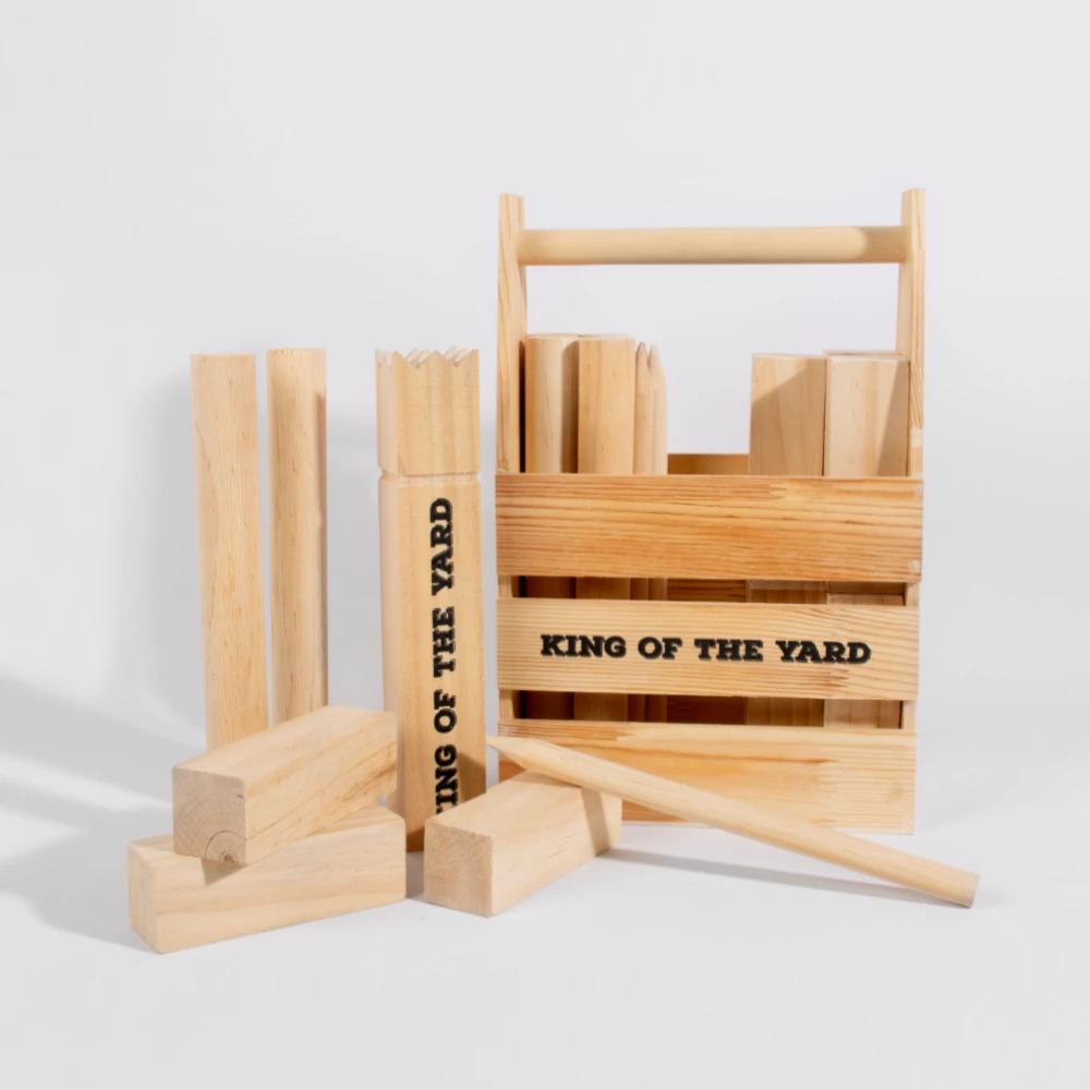 Knock over your opponents kubbs on their half of the playing pitch. To finish and win the game, you must finally knock over the king! 2+ players, to decide who begins, a player from each team must throw a baton at the king. The closest gets to start first.